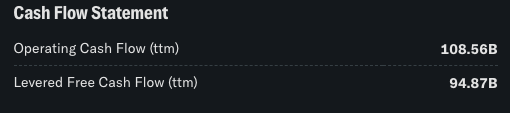 | Total Cash | 보유 현금. 애플은 약 550억 달러 보유. |