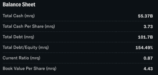 | Return on Equity (ROE) | 주주 자본 대비 얼마나 이익을 내는지. 149%는 매우 높음. |