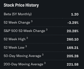 | 52 Week Change | 최근 1년간 주가 변화율. |